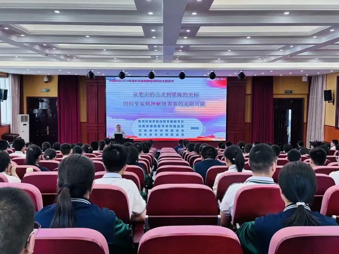 2025年5月20日下午,太阳集团tyc分党委副书记、工会主席韩树栋走进黄科院附属中学开展科学家精神宣讲。宣讲活动由黄科院附属中学党支部副书记贵鑫主持,高一年级200余名师生参加。
