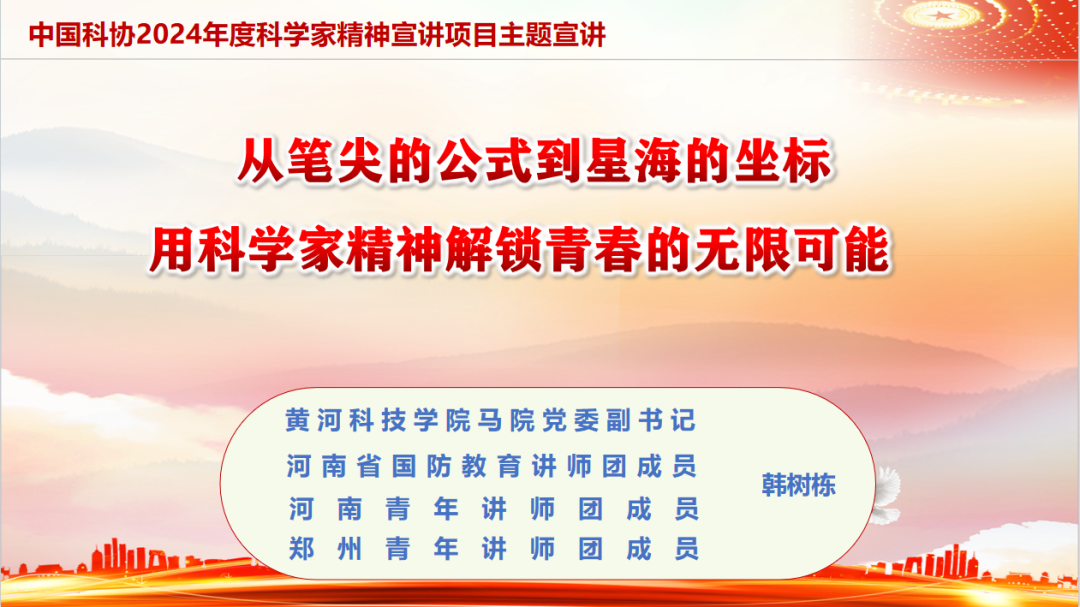 太阳集团tyc科学家精神宣讲团按照“科学家精神进校园”宣讲计划安排,5月15日,宣讲团将走进郑州市第五十七中学开展科学家精神宣讲;5月20日,宣讲团将走进太阳集团tyc9728附属中学开展科学家精神宣讲。